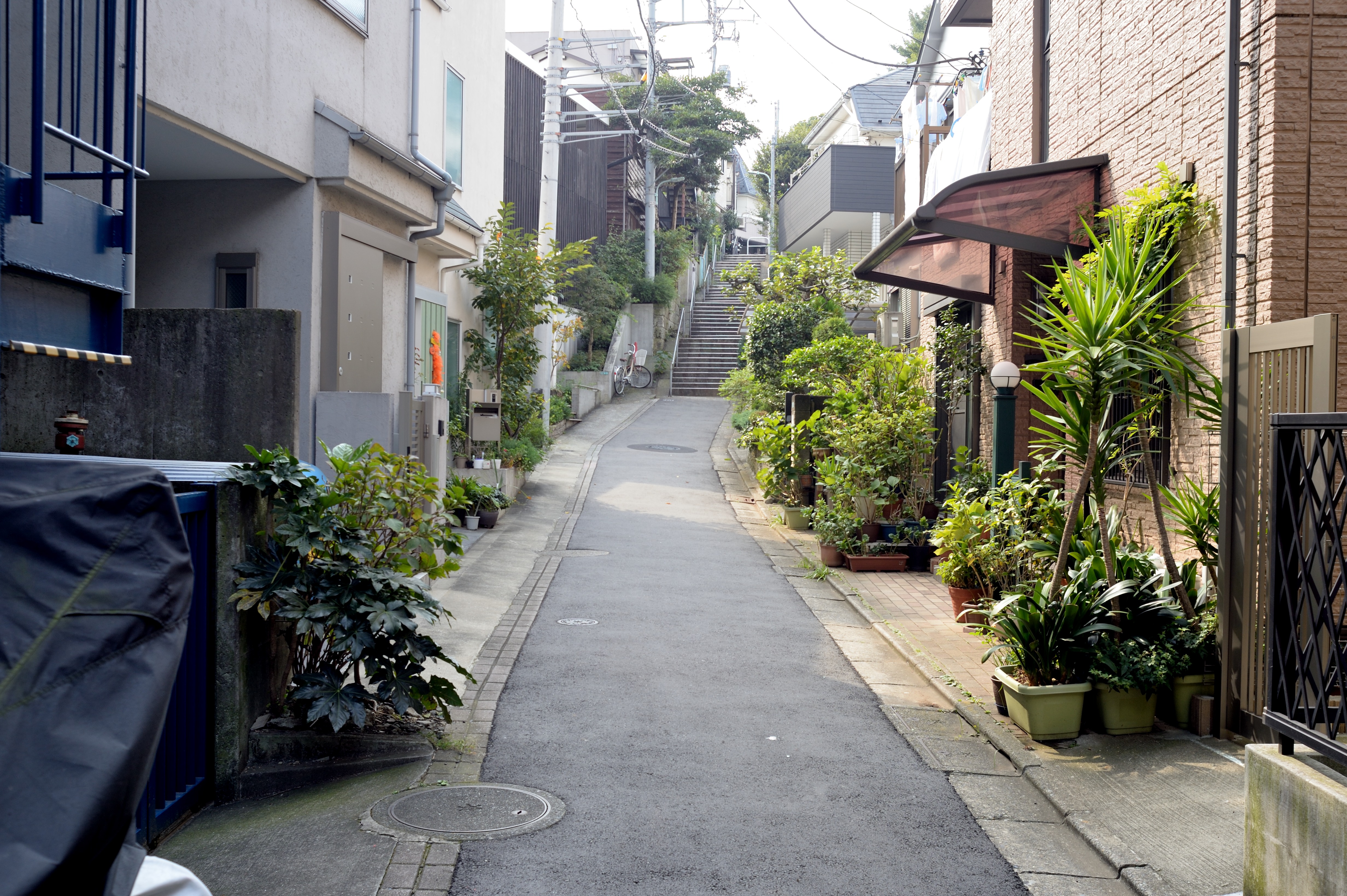 薄暗い路地.鬼平配下の密偵が盗人を尾行したとき,こんな道も通ったでしょう.今は代わりに監視カメラが設置してあります.