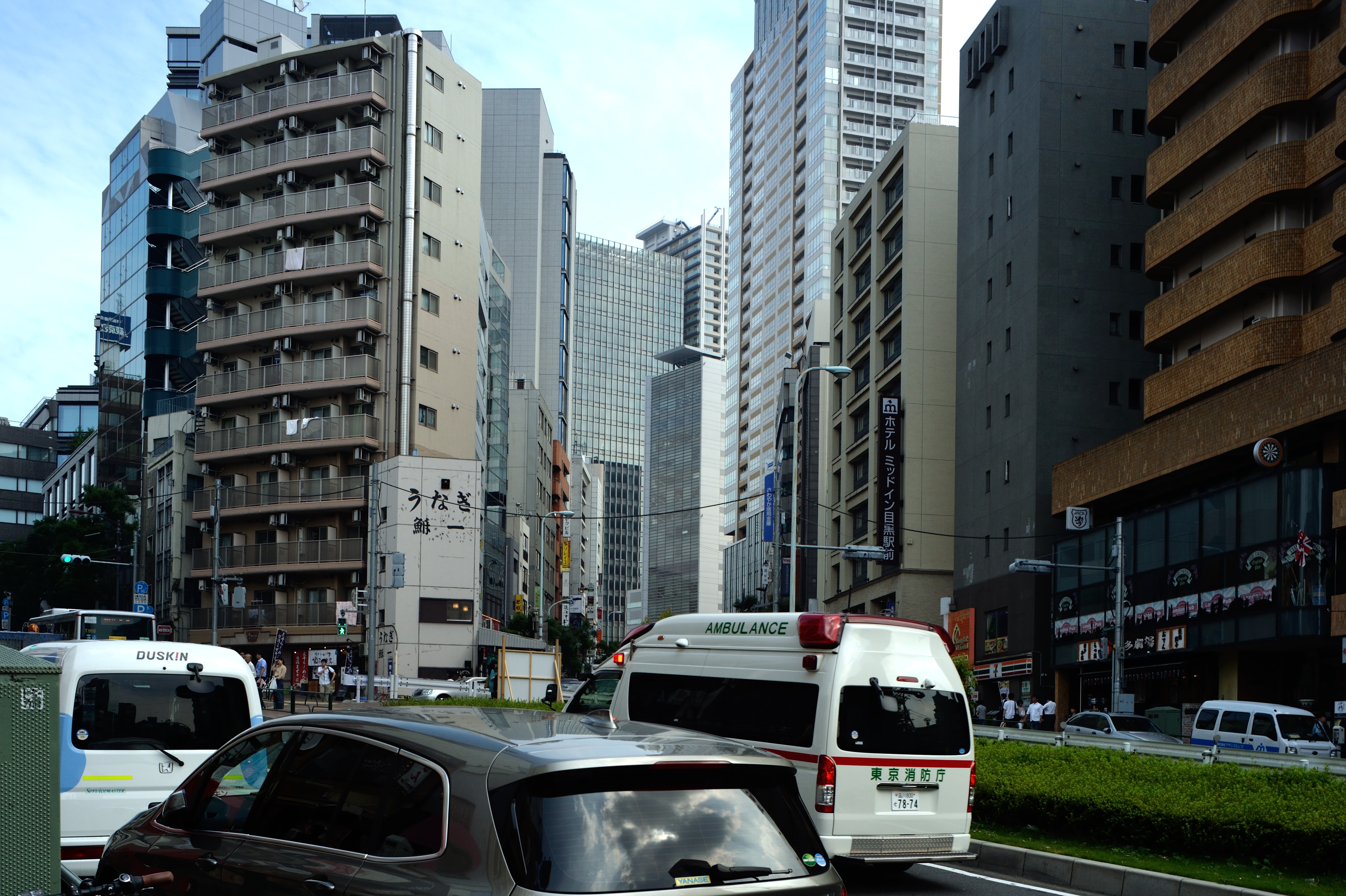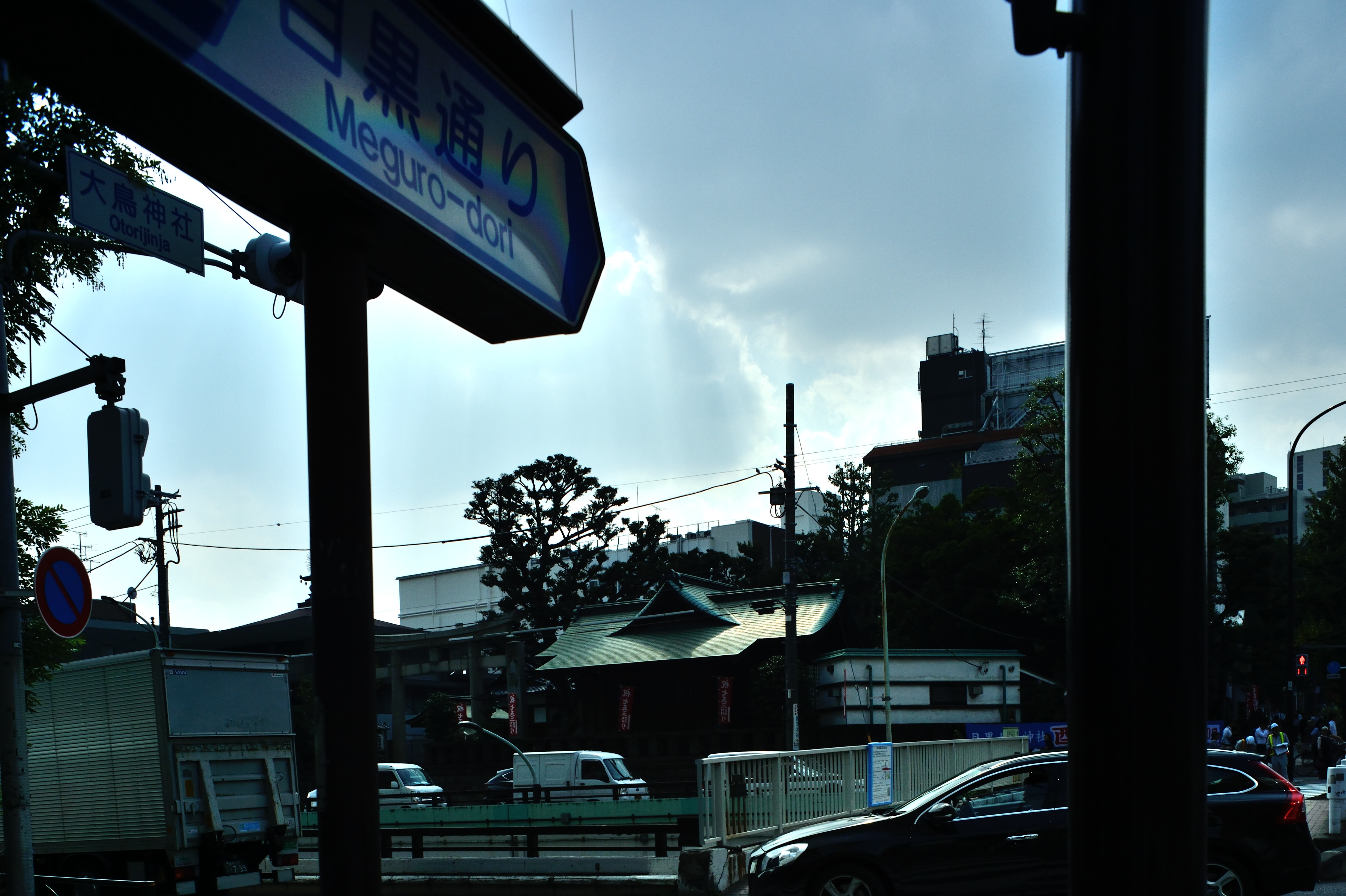 目黒駅方向にはビルが立ち並びます.救急車が通り,現代に引き戻されます.