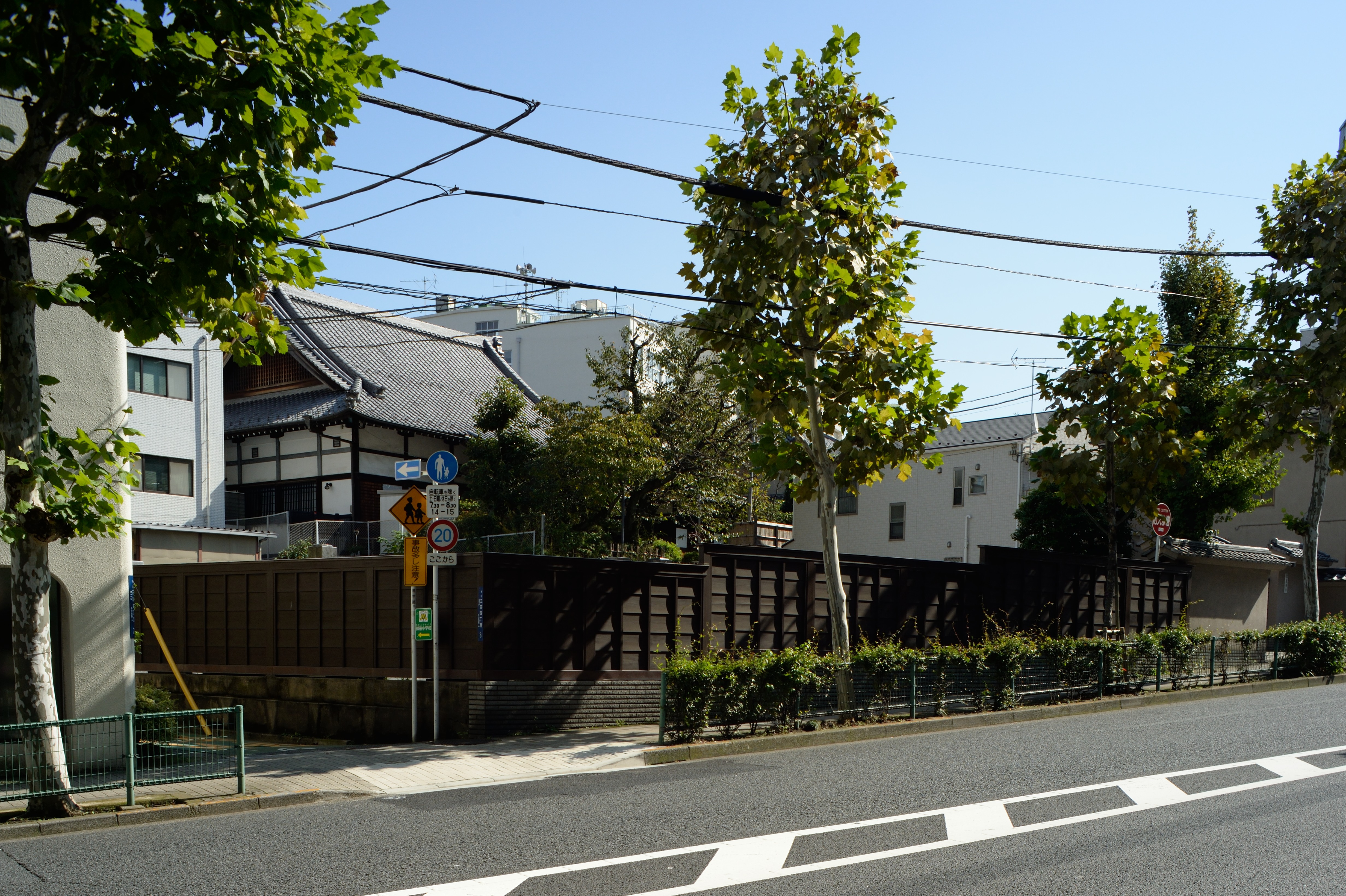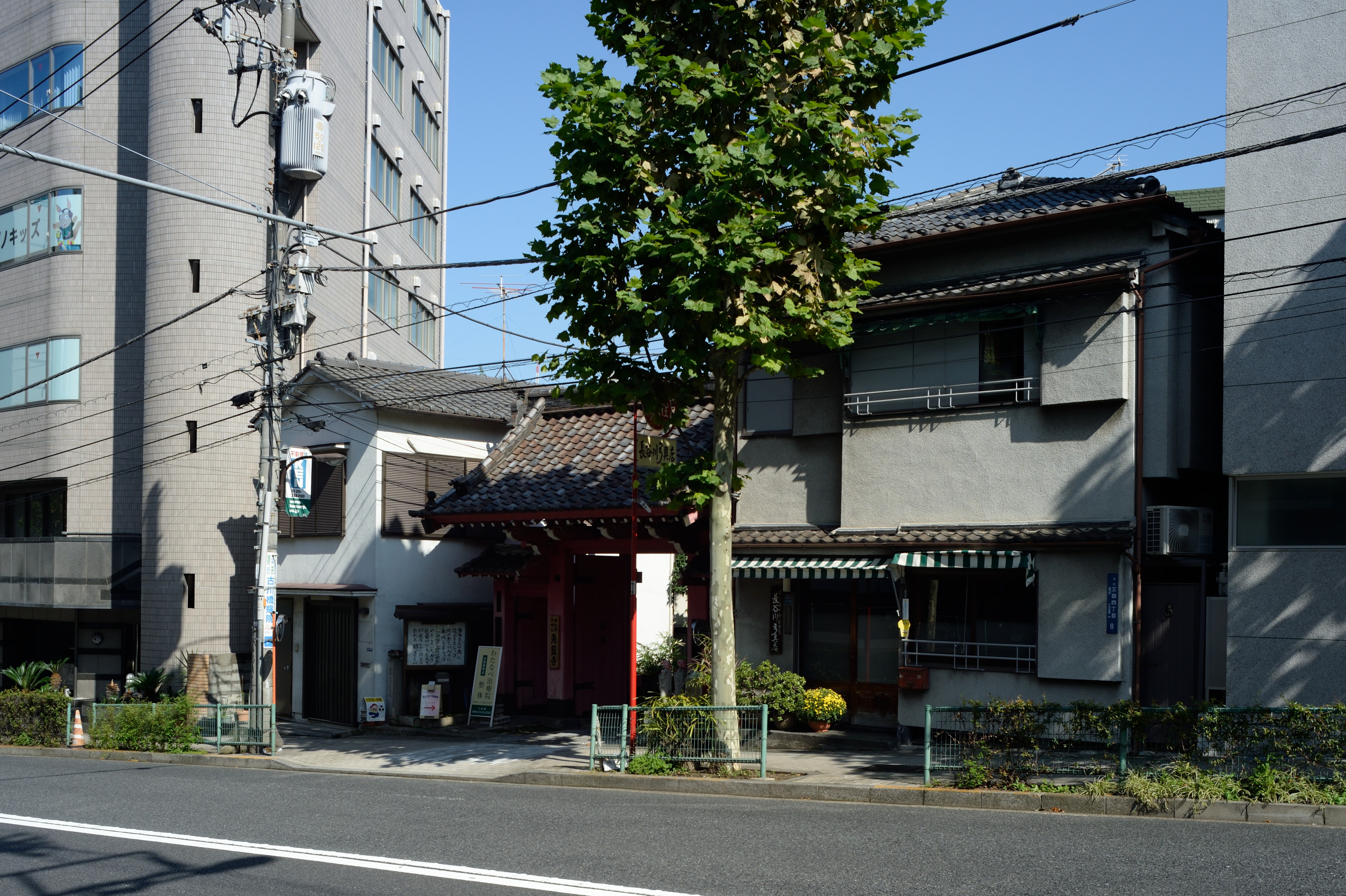 魚籃坂下の交差点から魚籃坂を上っていく左手には寺が並んでいます.最初に見えるのは,板塀で寺町の雰囲気を醸し出してくれる宝徳寺です.