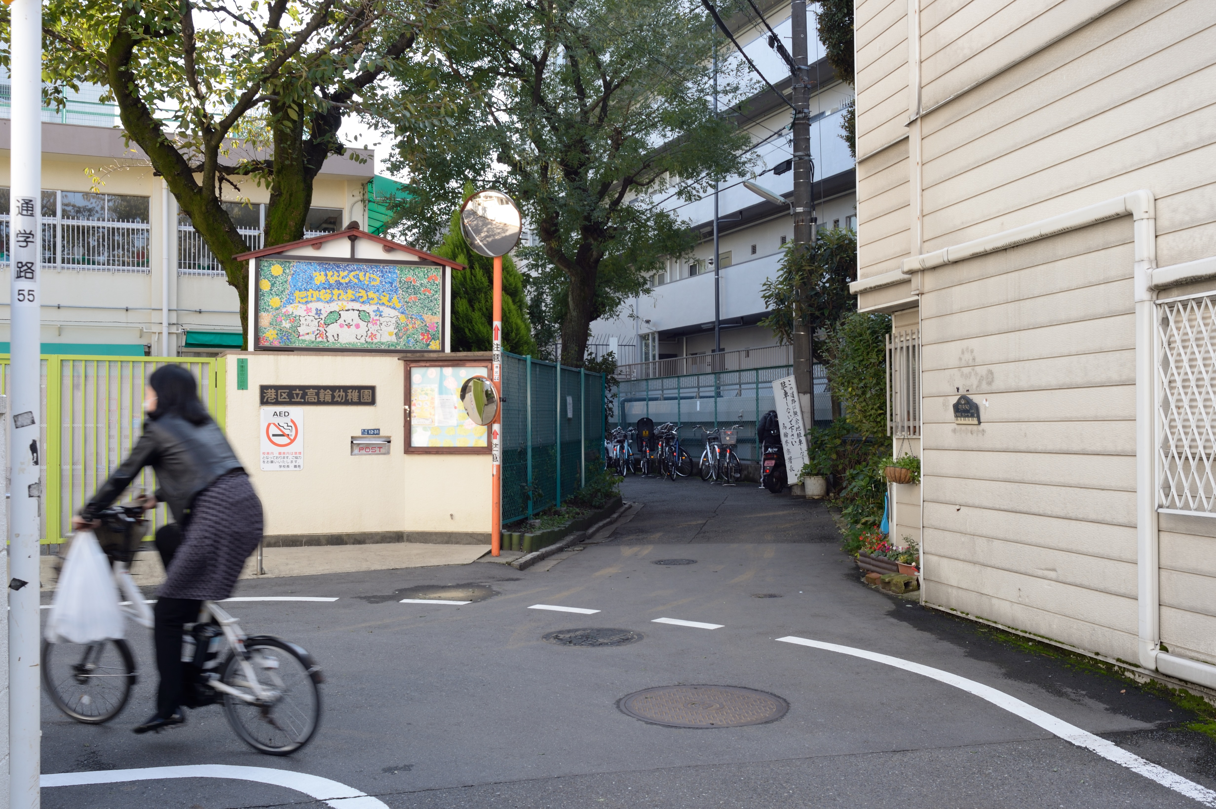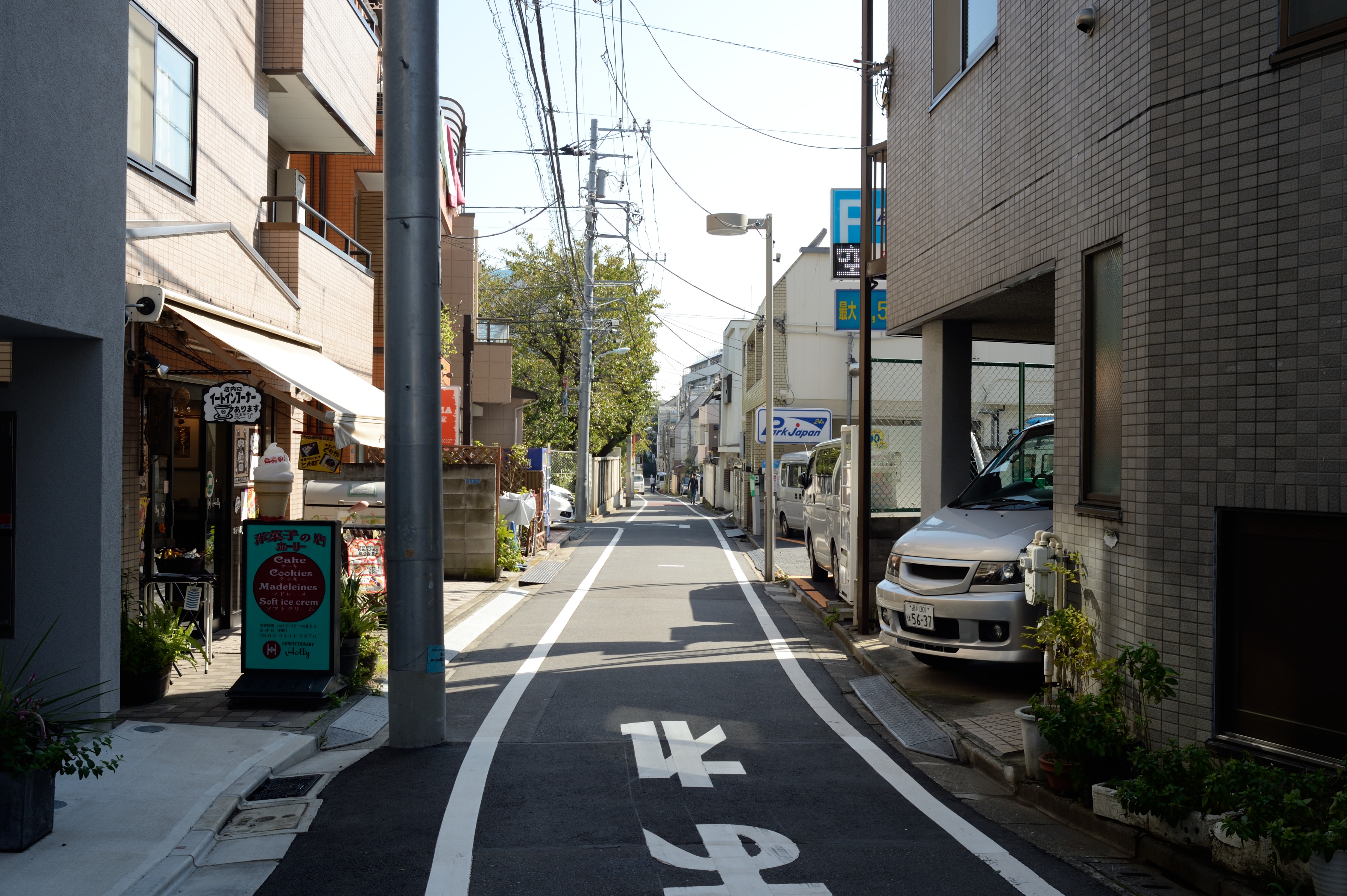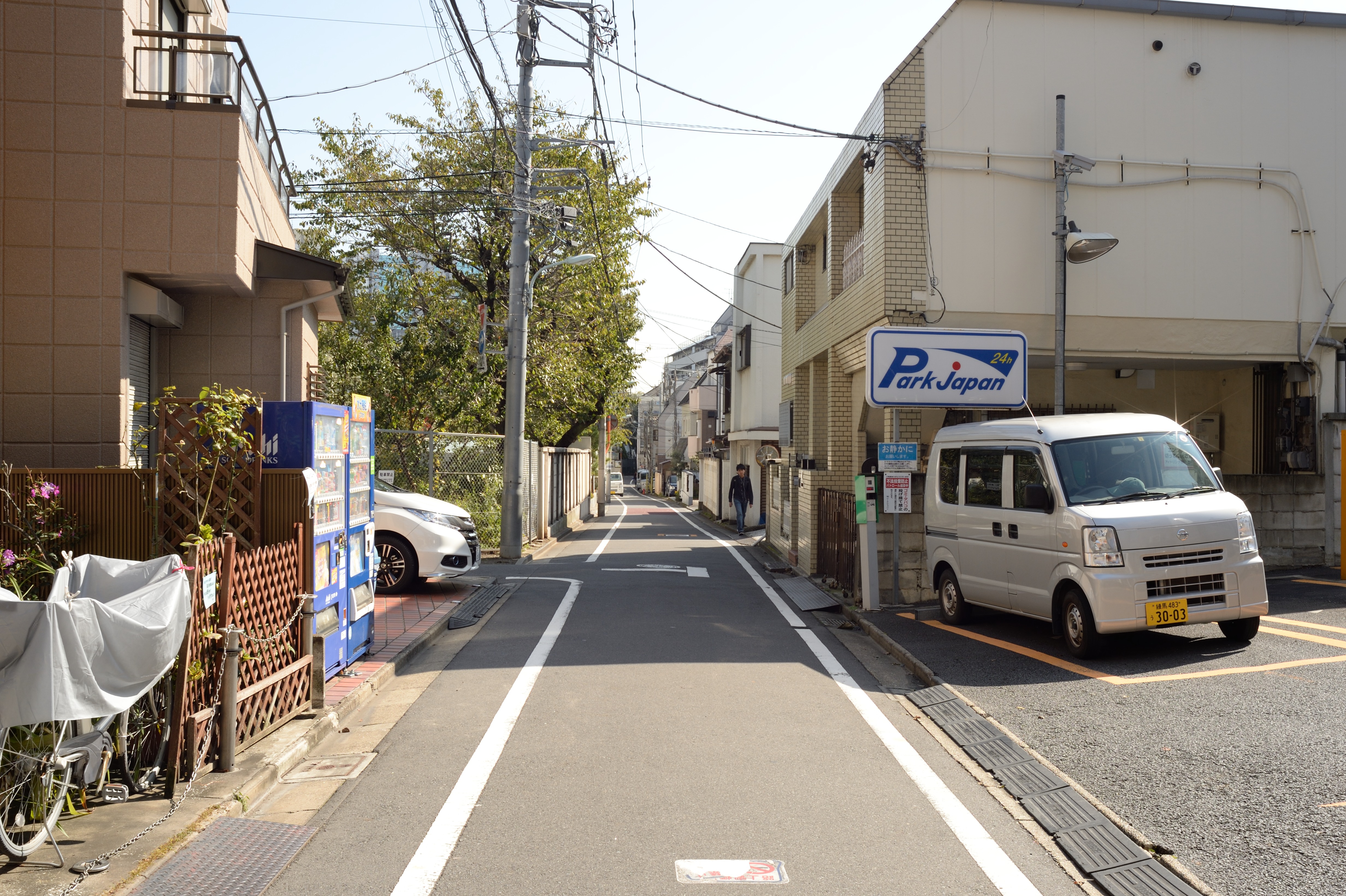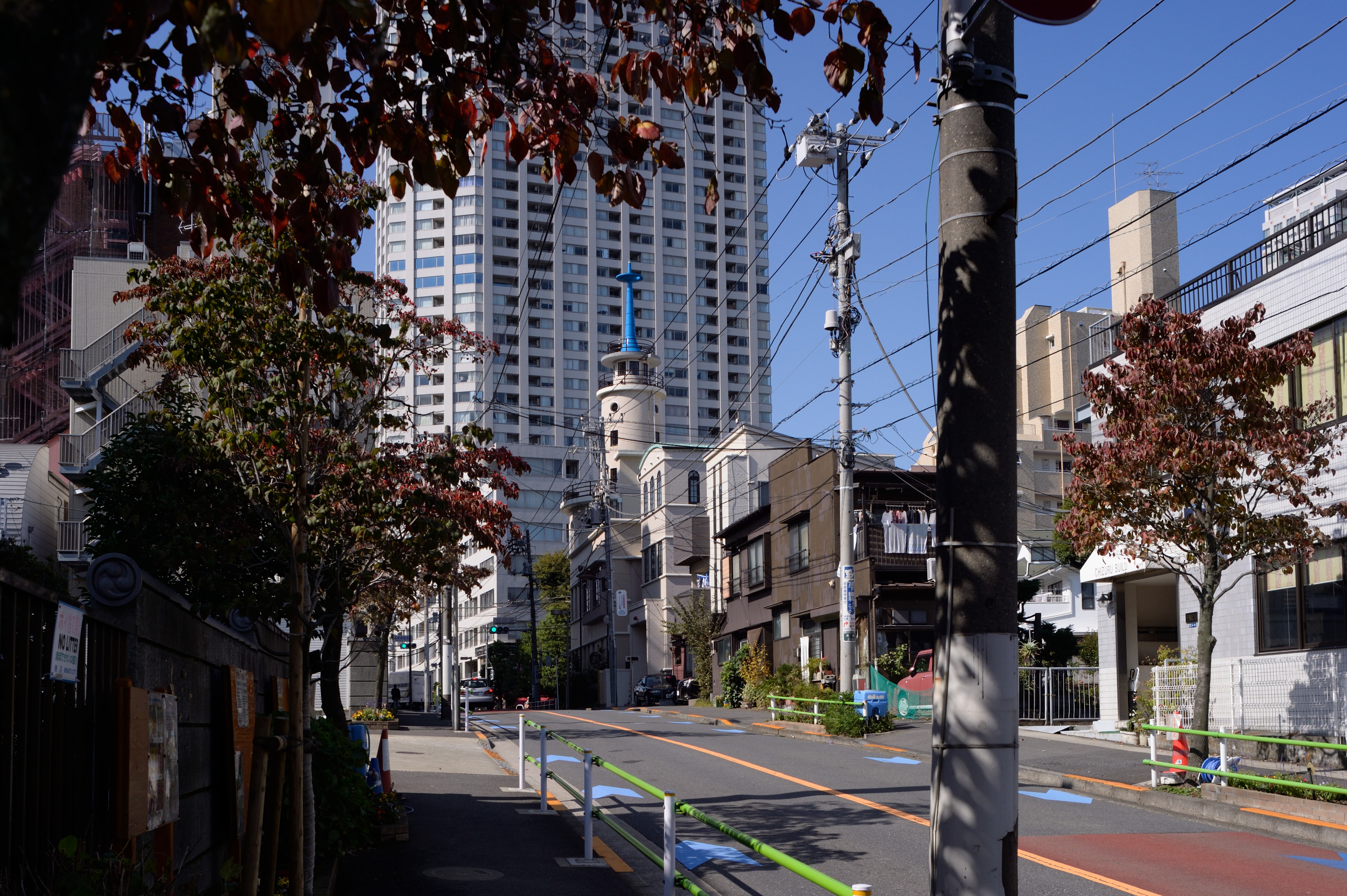 坂の途中で左に折れて高輪公園を抜けた先にある細道.散歩気分をかきたててくれます.