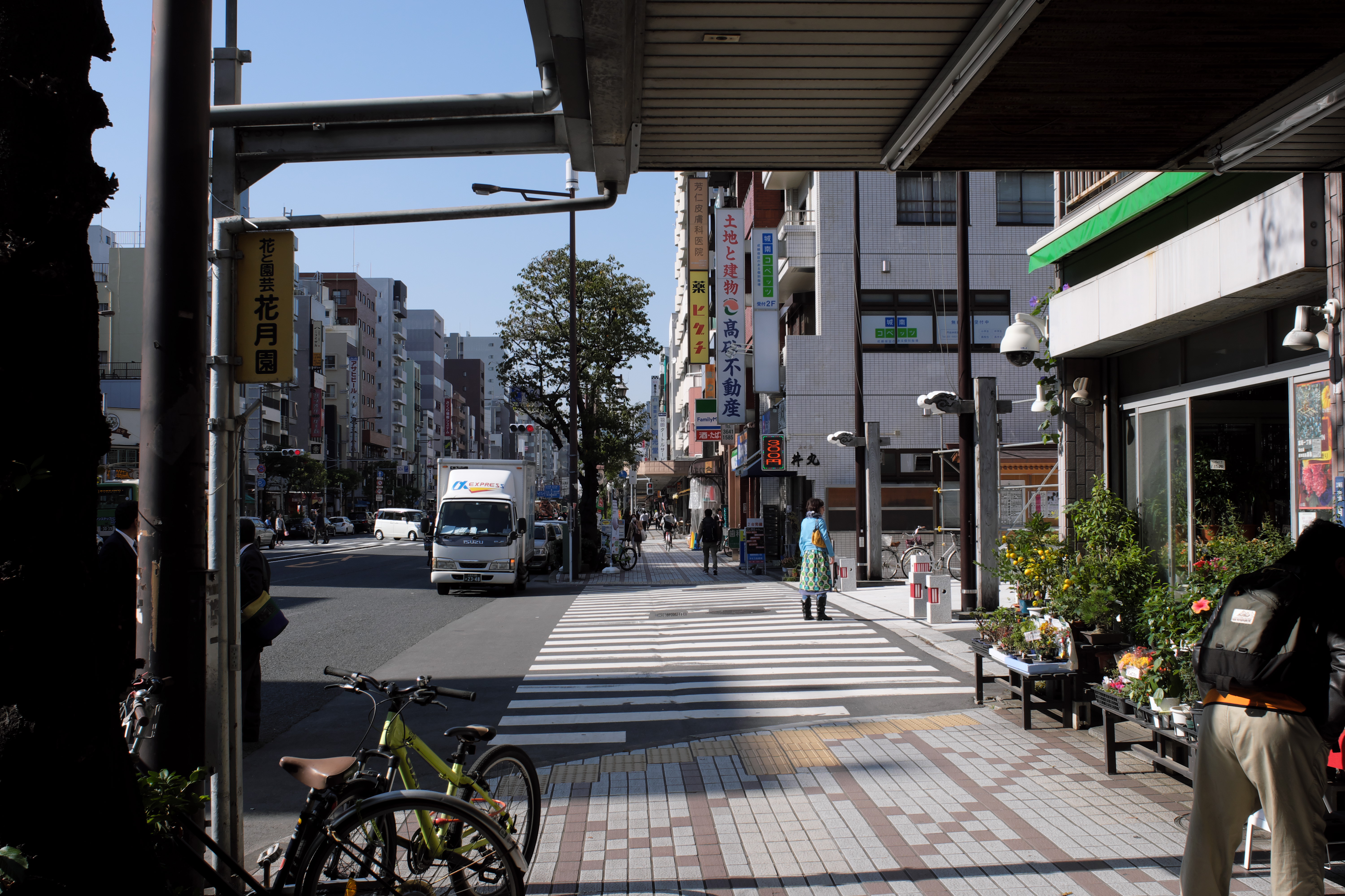 八幡宮二の鳥居の前の商店街.江戸情緒はあまり感じられないようです.