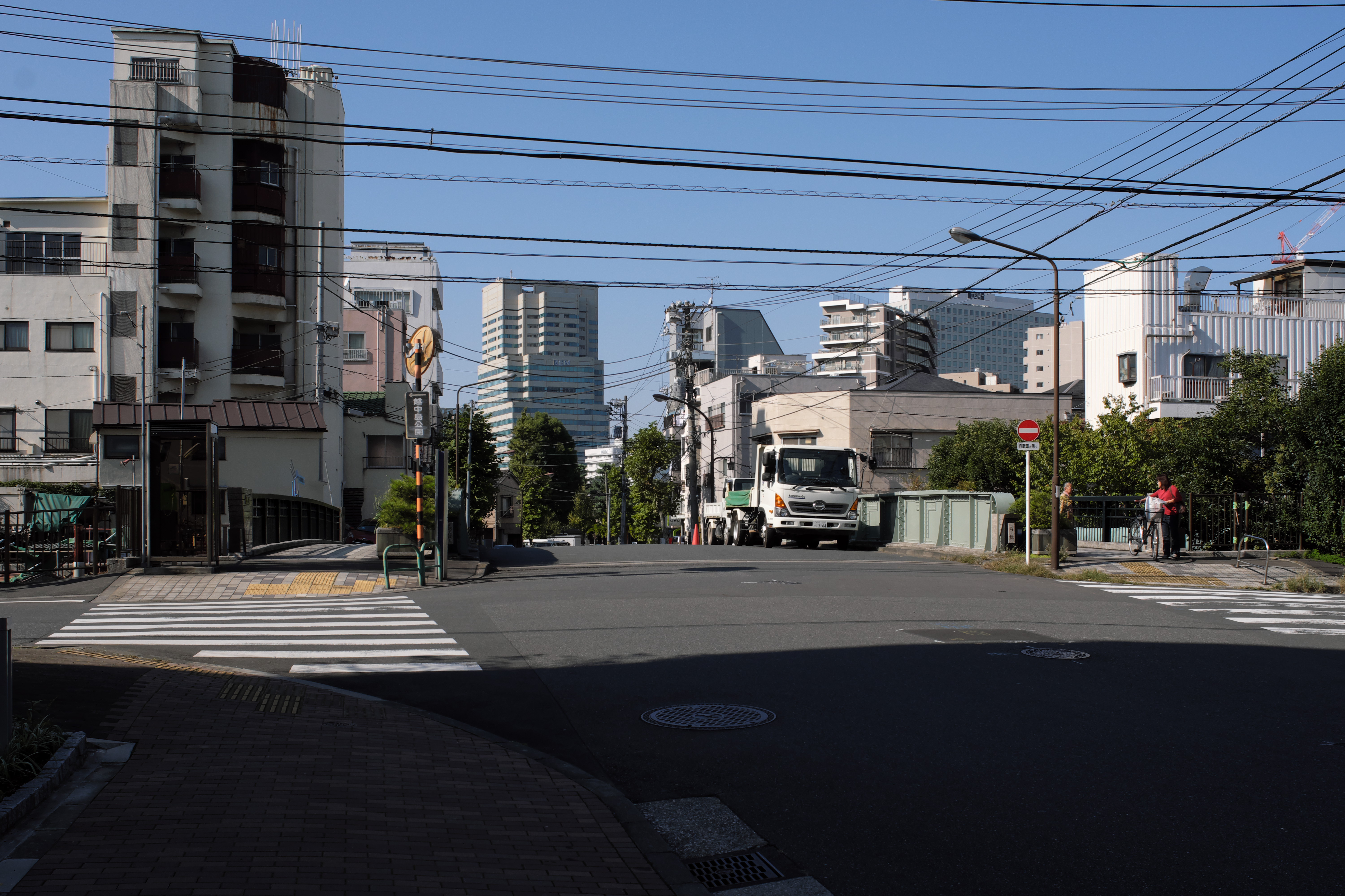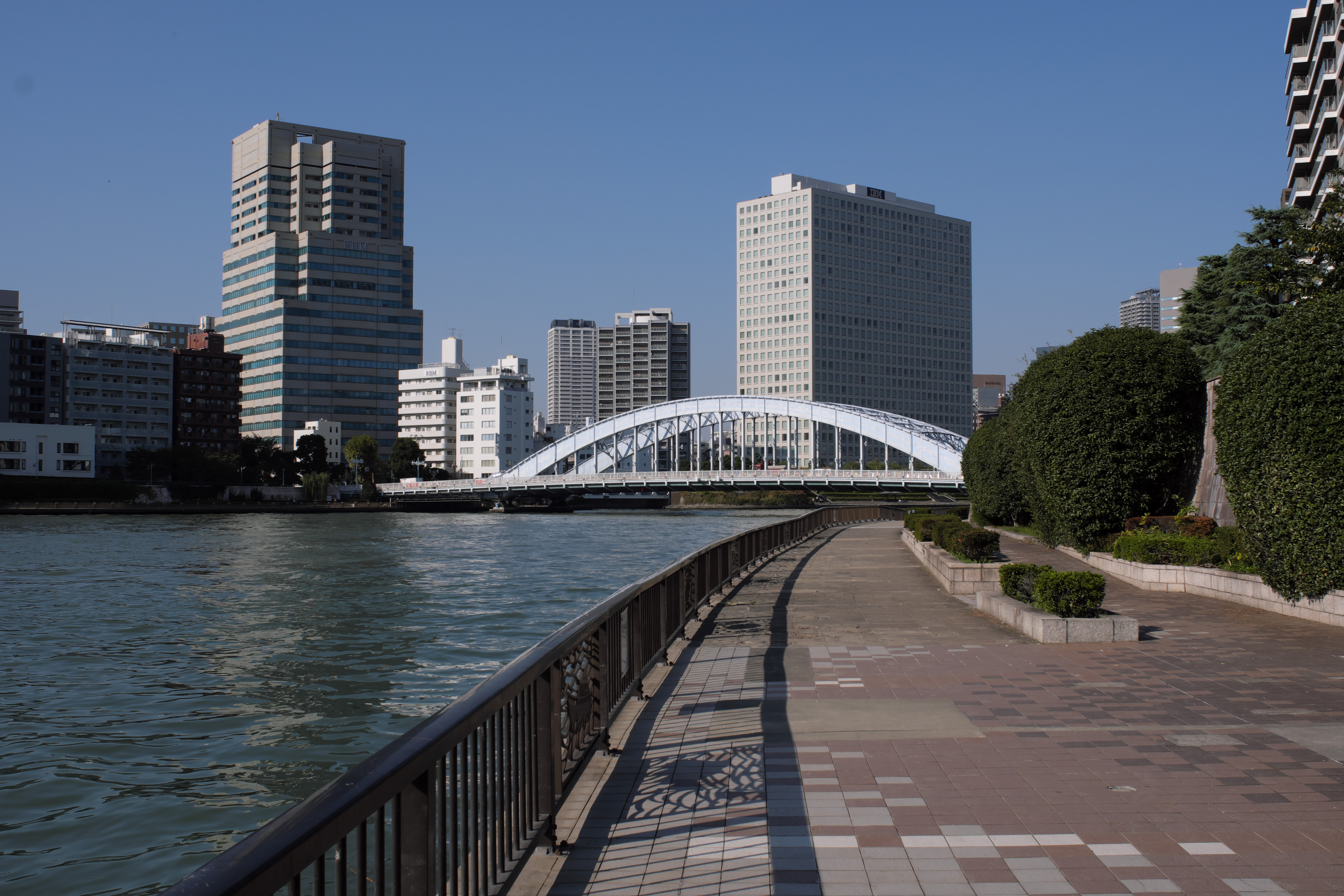 上の地点の100メートル南側に堤防があり,その外は隅田川河口で,永代橋がすぐそばに見えます.